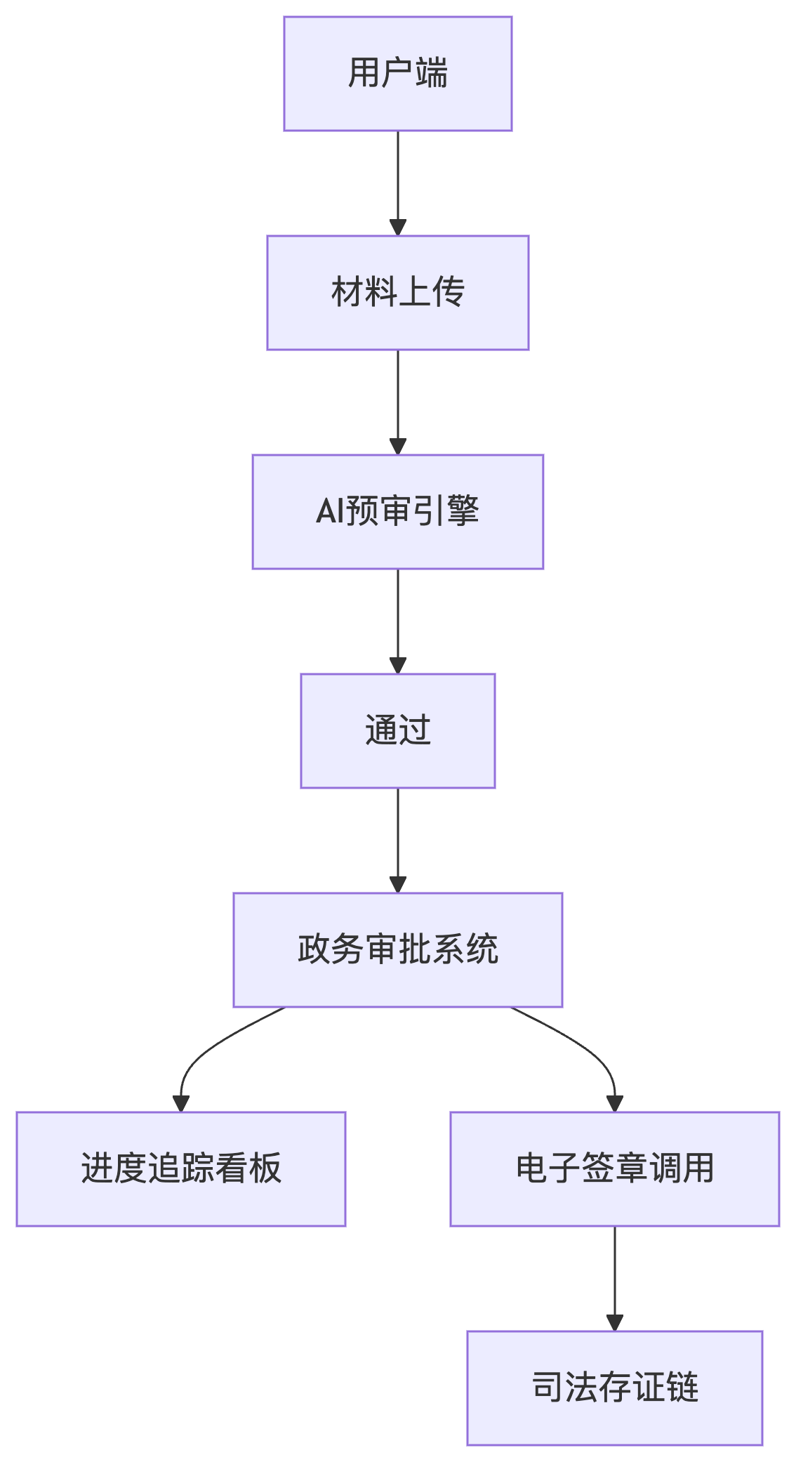 進度追蹤中臺:對接政務(wù)專網(wǎng)審批系統(tǒng)獲取實時狀態(tài)、智能預(yù)測剩余時長(基于歷史辦理數(shù)據(jù))
